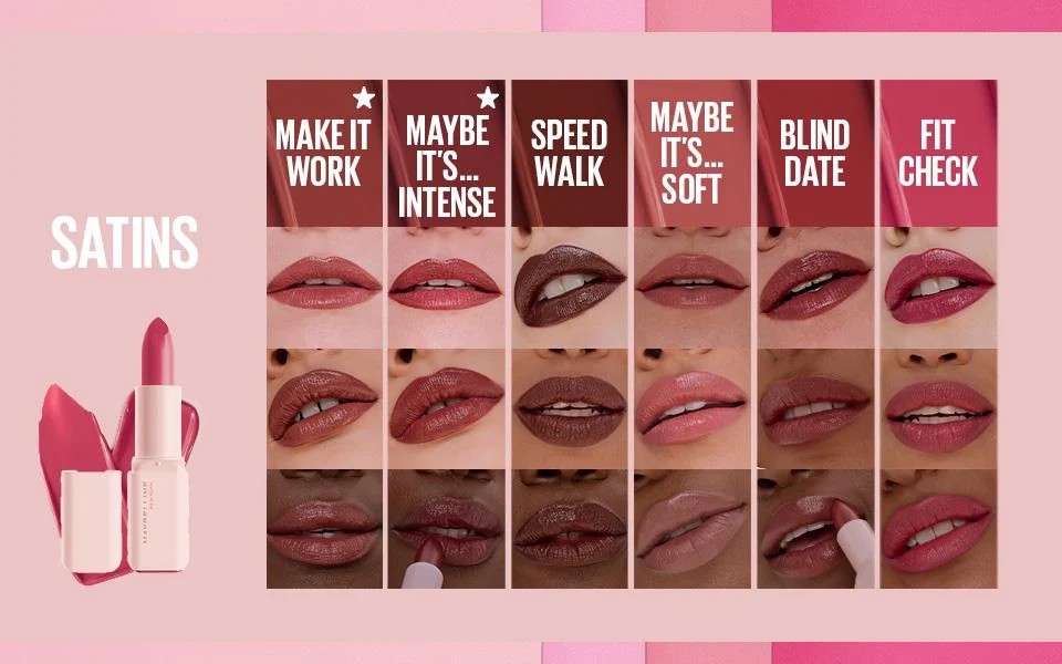 Discover tone-enhancing shades - 16 mattes and satins designed for all-day wear. Find your perfect shade from subtle everyday nudes to bold pops of color. This range offers a diverse spectrum of options designed to be skin tone enhancing, helping you discover your ideal match and elevate your lip look.
