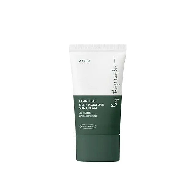 Anua Heartleaf Silky Moisture Sun Cream SPF50+ is a lightweight and creamy sunscreen designed for everyday use. Formulated with Heartleaf Extract, this sun cream provides SPF50+ and PA++++ broad-spectrum protection while soothing sensitive skin. Its non-sticky texture ensures a smooth, semi-dewy finish without leaving a white cast, making it ideal for all skin types. Key Benefits: • High Protection: Offers SPF50+ and PA++++ for strong protection against harmful UV rays. • Soothing Properties: Infused with Houttuynia Cordata Extract to calm and care for sensitive skin. • Hydration Boost: Contains Panthenol to lock in moisture and keep skin hydrated all day. • Lightweight Formula: Smooth, gel-like texture absorbs quickly without any greasy residue. • Gentle on Skin: Non-irritating formula suitable for daily use on all skin types. How to Use: • At the final step of your skincare routine, apply a generous amount to the face and neck. • Use 15 minutes before sun exposure. • Reapply every 2-3 hours or after sweating or swimming for continued protection.