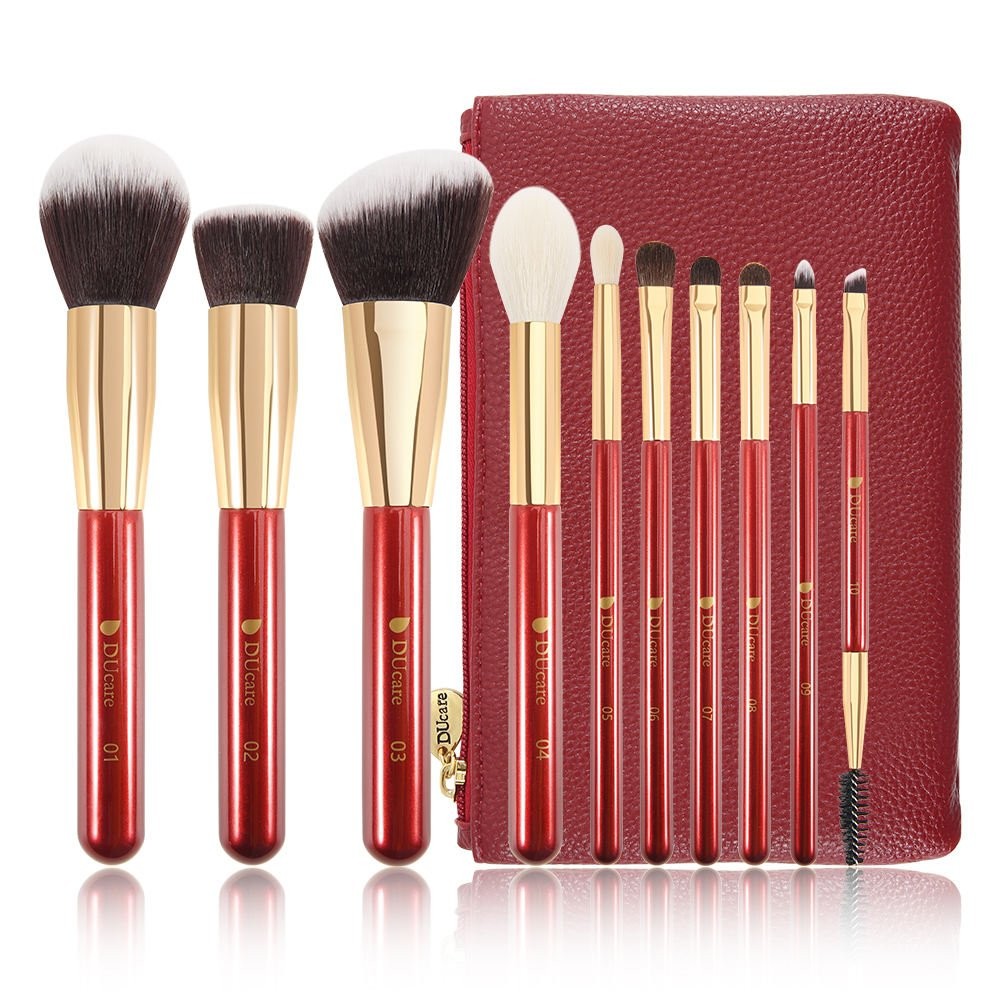 It contains with 10pcs brushes and 3brushes for base makeup,4brushes for eyemakeup,1brush for eyebrow and 1brush for lips.