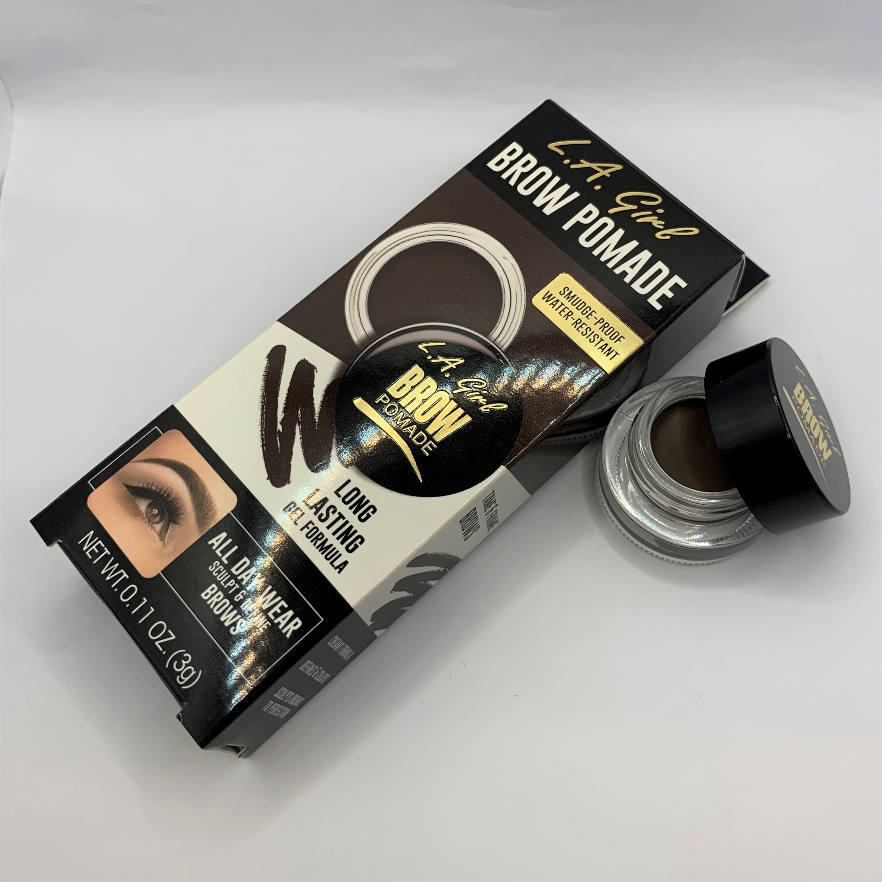 Define and sculpt perfect looking brows. Creamy pomade glides on smoothly and locks into place. Water-resistant formula lasts throughout the day without fading or smudging. To fill and fix brows.