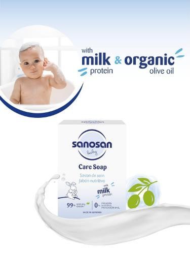 This mild herbal soap contains premium, natural active substances such as hydrolysed milk protein and organic olive oil which protect baby’s skin against moisture loss.