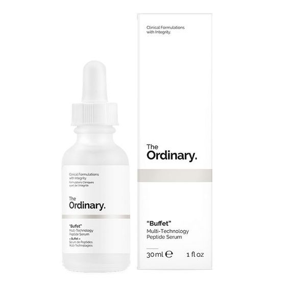 This formula combines a comprehensive array of studied technologies to target multiple signs of aging at once. The technologies are Matrixyl™ 3000 peptide complex (with palmitoyl tetrapeptide-7), Matrixyl™ synthe'6™ peptide complex (with palmitoyl tripeptide-38), SYN™-AKE peptide complex (with dipeptide diaminobutyroyl benzylamide diacetate), ARGIRELOX™ peptide complex (with acetyl hexapeptide-8, pentapeptide-18), Probiotic complex (with lactococcus lactis lysate), in a base of 11 skin-friendly amino acids and multiple hyaluronic acid complexes. The total concentration of these technologies in the formula by weight is 25.1%. (References are made to third-party trademarks in this description. SYN™ is a trademark of DSM, Matrixyl™ synthe'6™ and Matrixyl™ 3000 are trademarks of Sederma Inc., and ARGIRELOX™ is a trademark of Lipotec S.A.U. Neither The Ordinary nor DECIEM is affiliated with these trademarks or their owners.) Note: The name of this formula was inspired by some brands referring to their expensive products offering combinations of these technologies as a "buffet", distastefully comparing such products to buffets that offer various kinds of food in one sitting. For a stronger effort against signs of age, our brand Hylamide offers a next-generation formula, SubQ Skin. Note: We are deeply grateful to our devoted customers for loving us and our products so much. Our lab has and continues to devote countless hours to share the newest innovations with our broader world. The Ordinary now offers a wide range of products under the Vitamin C, Peptide and Direct Acid categories, and to help our ever-growing, loving family of users build functional and effective routines incorporating these products we have developed an introductory guideline into the brand. Previously, we did not have a contraindication listed for the use of direct acids/Vitamin C with any of our peptides. However, we now have a huge arsenal of these products and some of the formulations are more susceptible to hydrolysis with certain types of Vitamin C or acids. Instead of developing a complex guide listing the compatibility of each of our peptides with each acid and Vitamin C, we have adapted the following approach to maximize efficacy for the maximum number of people: It is best to not use Peptides in the same routine as the following products: Direct acids, LAA (L-Ascorbic Acid) and ELAA (Ethylated Ascorbic Acid). In addition, we would recommend avoiding the use of products containing copper peptides in the same routine as strong antioxidants as well as direct acids/LAA/ELAA.