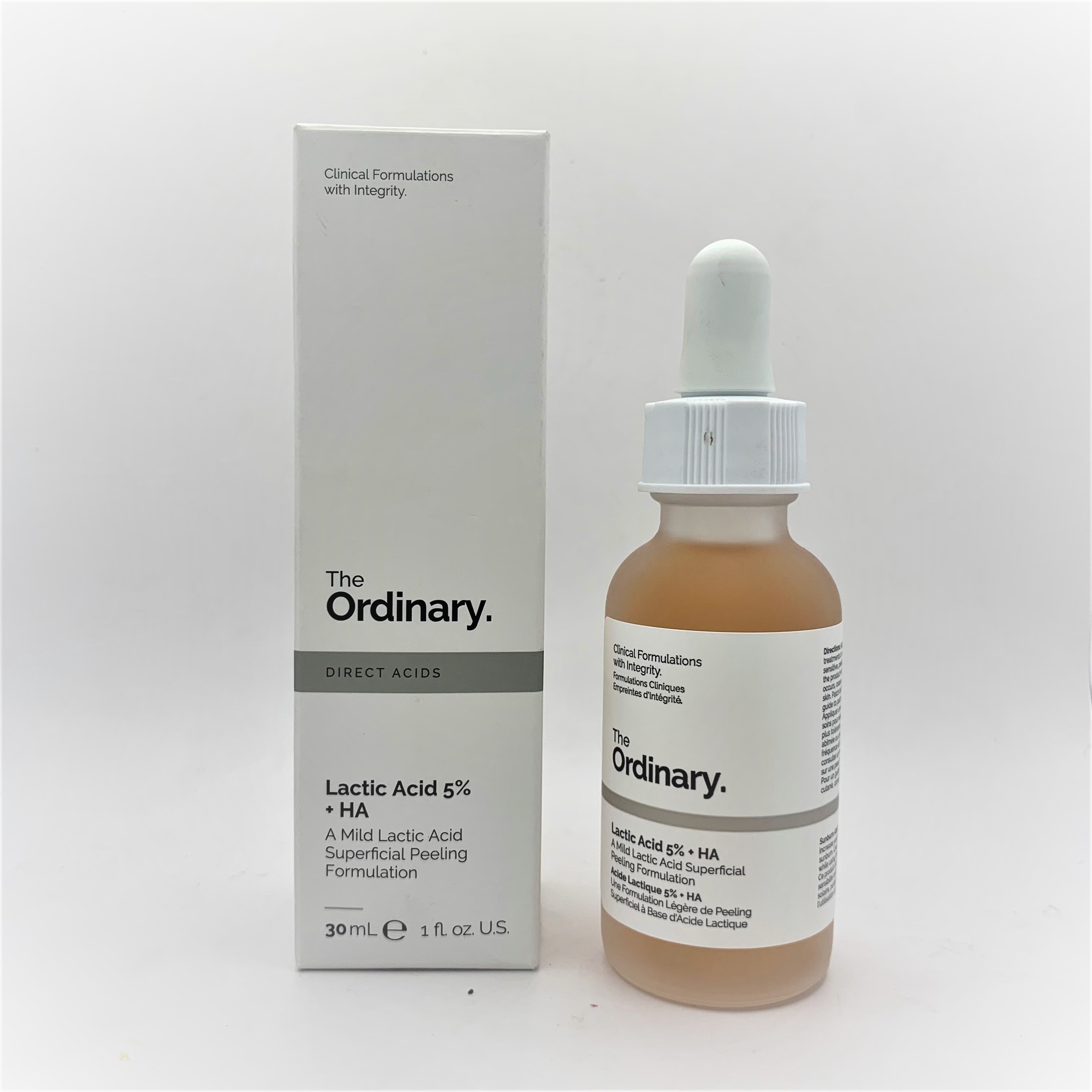 Lactic Acid 5% + HA is a mild alpha hydroxy acid solution that offers gentle yet effective exfoliation targeted at the skin’s surface. It is supported with purified Tasmanian pepperberry extract , which has been shown to reduce irritation and sensitivity that can be associated with acid use. This water-based serum is ideal for dry and sensitive skin. This pH of this formula is approximately 3.8. Lactic Acid has a pKa of 3.8 and pKa is the most important aspect to consider in formulating with acids. pKa implies acid availability. When pKa is close to pH, there is an ideal balance between salt and acidity, maximizing effectiveness of the acid and reducing irritation